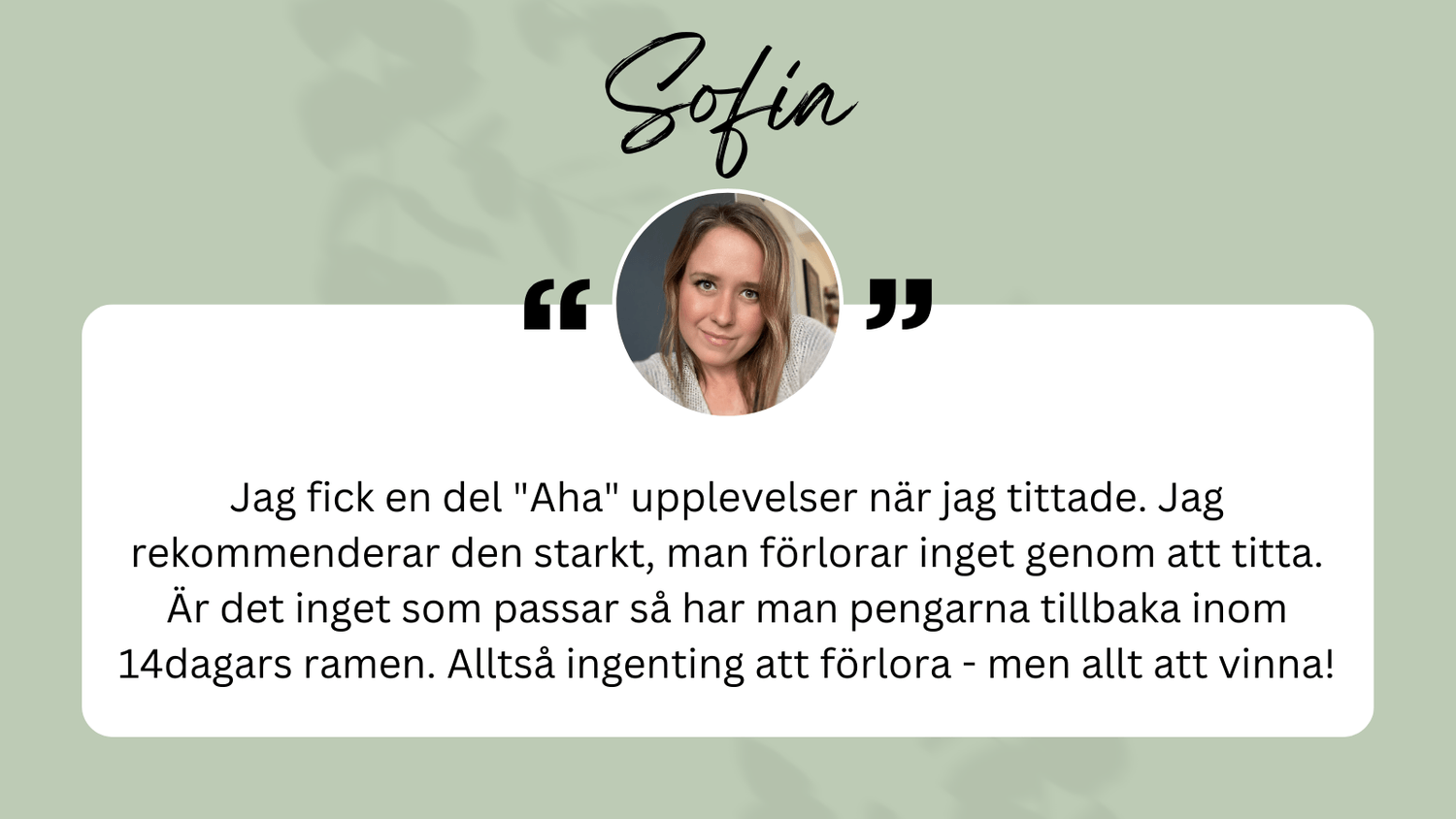 Du har 14-dagars öppet köp. Om du ångrar dig kontakta din mentor så återbetalar vi hela beloppet.